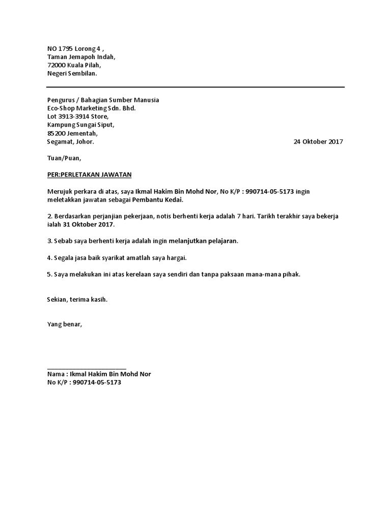 Nama ahamat mat bin kaim elam. Contoh surat berhenti kerja 24 jam. Diberhentikan kerja oleh majikan tanpa sebab.